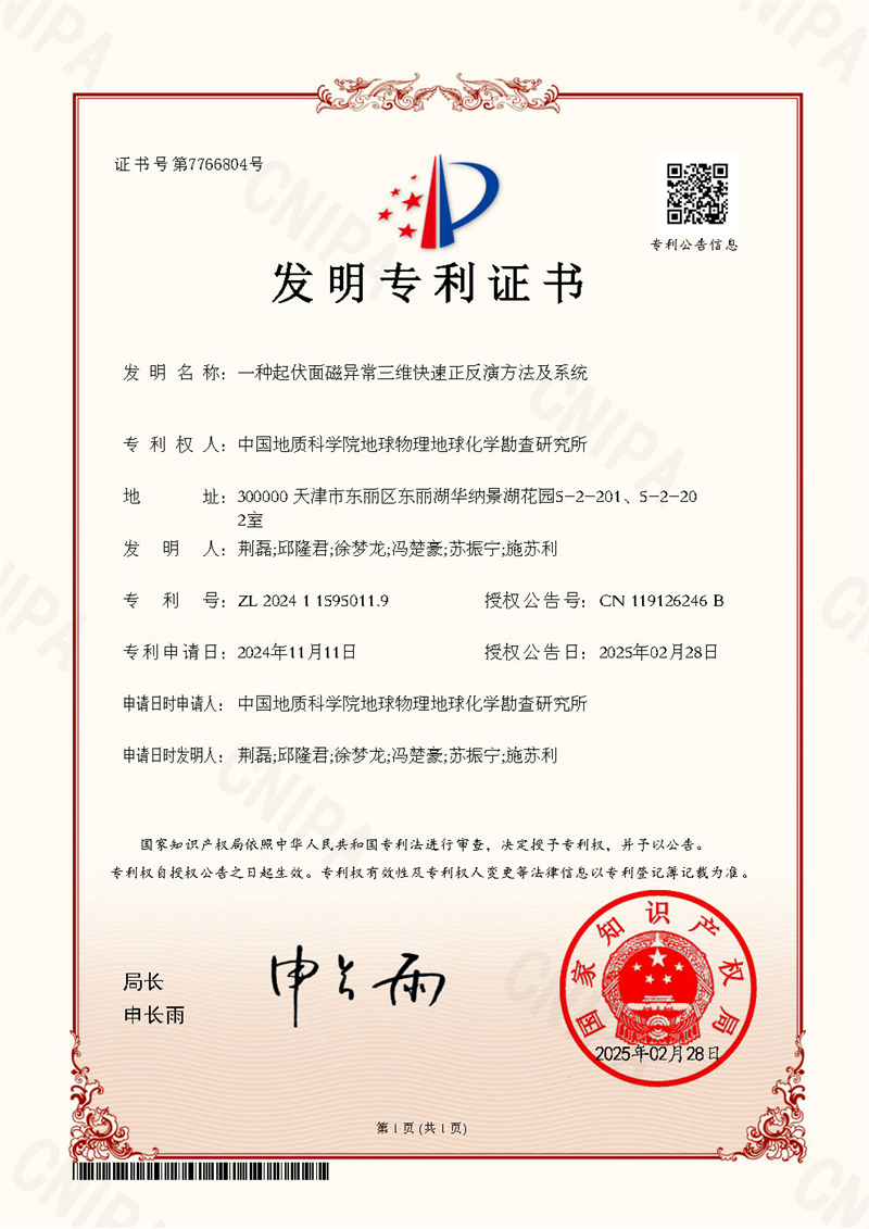 中国地质科学院地球物理地球化学勘查研究所在重磁探技术研发取得系列突破——获批六项国家发明专利授权,进一步完善了重、磁三维反演技术体系。