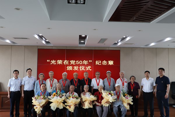 我所共有35位老党员荣获“光荣在党50年”纪念章,平均党龄60年,最长的为72年。参加颁奖仪式的老党员中,有的已是91岁高龄,有的双腿不能长时间行走,有的听力严重下降,但他们早早来到会场,与所领导亲切地交谈,激动地等待着仪式的开始。戴上纪念章的那一刻,老党员感慨万千,激动地高喊“共产党万岁”!