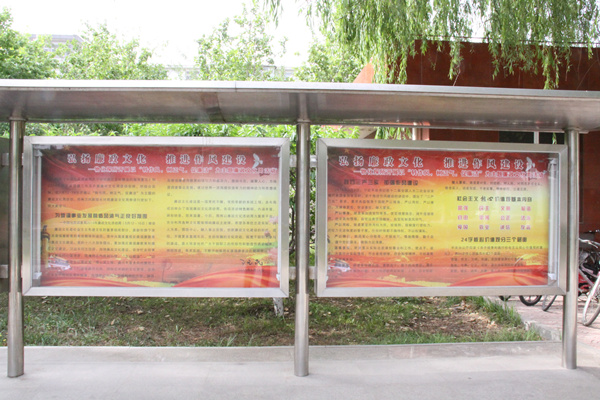 三是制作了“转作风 树正气 促廉洁”和“爱岗敬业求实绩 清风正气树新风”等廉政教育宣传横幅,悬挂在院区。