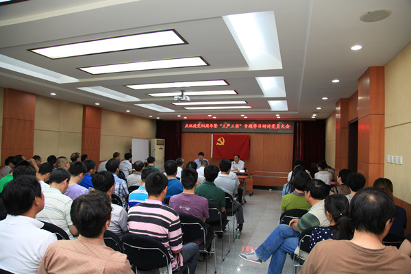为隆重庆祝中国共产党成立94周年,进一步激发党员干部的干事创业热情,增强党支部战斗堡垒作用,引导党员增进爱党之情,常怀忧党之心,恪尽兴党之责,赞颂党的光辉历程,地科院物化探所于2015年7月1日组织召开了“庆祝建党94周年暨‘三严三实’专题学习研讨党员大会”。会议由所长、党委副书记彭轩明同志主持,党委书记、副所长甘行平同志作讲话,全所近90名党员参加会议。