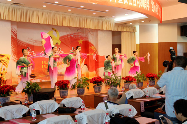 2016年6月30日,国土资源部在部机关举行庆祝建党95周年暨长征胜利80周年“红心向党”文艺演出,张德霖副部长致辞,姜大明部长全程观看演出并与演员合影留念。老同志们共演出十二个文艺节目,歌颂了党的丰功伟绩,表达了对党的忠诚和对美好生活的憧憬。演出现场,物化探所七人老年舞蹈队表演的精心编排的舞蹈《映山红》,获得成功和好评。