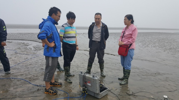 检查组听取了项目负责人有关野外工作组织实施、技术方法、质量管理、安全保障、保密制度以及廉政风险防控等方面情况的汇报,抽查了野外期间形成的各类记录,结合当地潮汐规律、滩涂区地形特点对已开展工作的浅层地震勘探、电磁法测量两个作业组进行了实地综合检查。