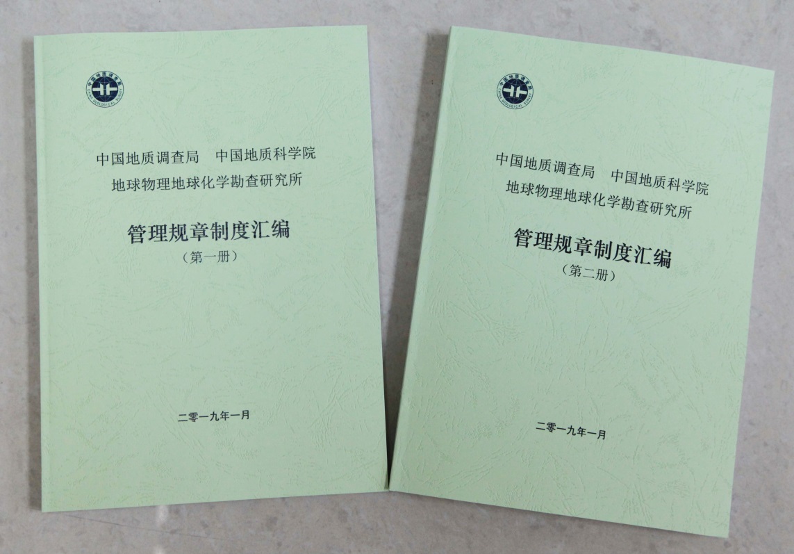 这次印发的管理规章制度汇编,共二册。第一册主要包含行政、地调科研、财务经济、人事教育方面的主要工作制度。第二册主要包含装备建设、监察审计、党建、安全保密、后勤保障和其他主要工作制度。在印发制度汇编的同时,所将制度汇编电子版在所内网进行了发布,方便全所职工随时学习查询。