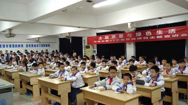 龙海市中心小学对本次活动高度重视,参加活动的学生对宣讲及展览内容表现出浓厚的兴趣,活动现场气氛热烈,取得圆满成功。学生们通过宣传活动深刻了解了地球及我国资源现状;了解了土地质量与人们生活的息息相关,纷纷表示会在今后的生活中注意保护环境,节约利用资源,注重绿色生活。