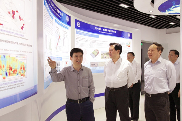 2016年5月10日,廊坊市委书记王晓东一行到物化探所,就中国地球化学调查成果和地球化学大数据平台应用工作调研指导。所长彭轩明、所有关部门负责人以及化探领域相关专家陪同调研参观。