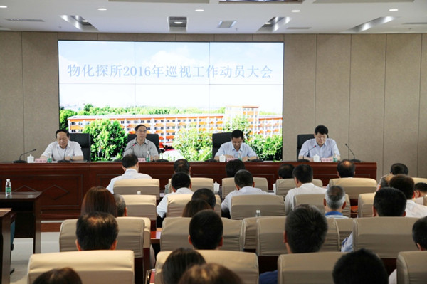 2016年6月13日,物化探所召开巡视工作动员大会。会议由所党委书记甘行平同志主持,巡视组李明祥组长作动员讲话,所长彭轩明同志作表态发言。所领导班子成员史长义、吕庆田、白冶,所中层干部、副高级及以上职称技术人员、职工代表近百人参加会议。