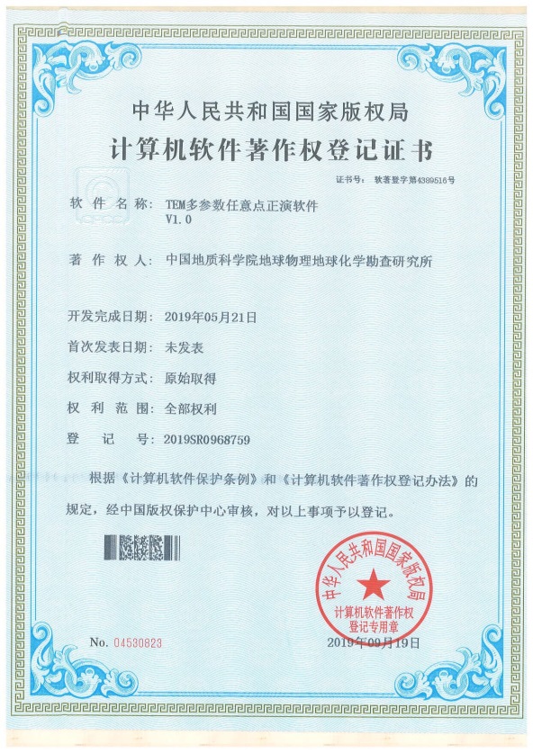 “TEM多参数任意点正演软件V1.0”。此软件可实现非规则装置条件下瞬变电磁正演,有效消除工作装置和地形带来的干扰,解决辽东地区复杂地形条件下非规则装置数值模拟,为反演解释奠定了坚实基础。