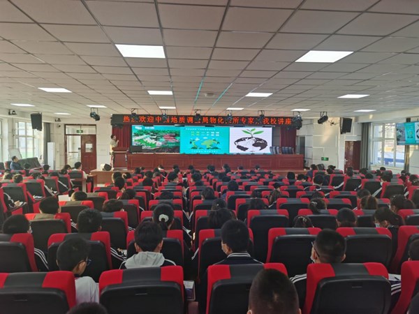 本次活动,邀请我所三名青年科技人员从地球物理和地球化学视角向中学生开展地球科学知识普及讲座,受众人数超过1000人。其中,彭敏博士以“土壤的前世今生”为题目向同学们科普了土地质量地球化学调查工作的进展和意义,介绍了土壤的定义、物质组成、形成过程、演化宿命以及人类活动对土壤的影响,让同学们对“地球的皮肤”土壤有了初步的认识,增强了大家保护地球家园的意识,也激发了大家进一步了解地球奥秘的热情。杜炳锐高级工程师以“高原冻土区的冰火奇缘”为题,结合自己的研究内容,向同学们介绍了国内外天然气水合物的发现历程和勘查技术进展,从地质与环境角度探讨了能源开发对三江源生态环境的影响,引导青少年提高科学素养、树立低碳理念,在未来的道路上努力奔跑,追求梦想。徐梦龙博士以“你好哈,能源新贵—页岩气”为题,以页岩气作为清洁能源对于人类生活的意义为切入点,深入浅出讲述了页岩气的演化形成、分布特征、开采技术以及我国页岩气勘探现状,丰富了同学们对页岩气地质特征、综合利用等方面的认知。活动期间,向全体师生展示了仪器设备并免费发放了科普画册。