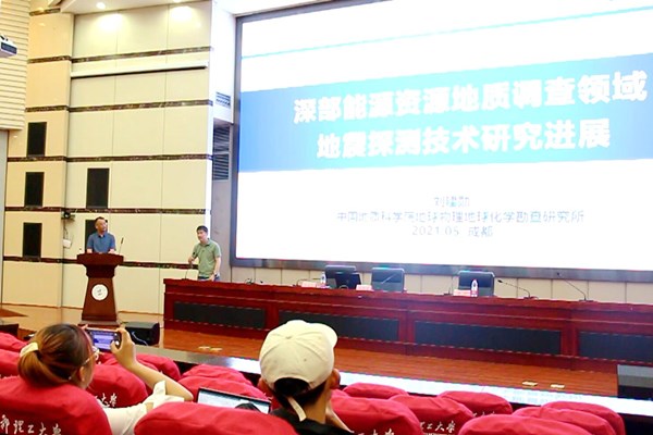 2021年5月21日-22日,自然资源部中国地质调查局地球物理地球化学勘查研究所为落实中央“党旗在基层一线飘扬”精神、响应“百年回望:中国共产党领导科技发展”活动主题,联合成都理工大学精心组织了“地球物理-地球化学科技周大讲堂”活动。活动在成都理工大学国际学术报告厅和地灾国际学术报告厅同时开展,来自成都理工大学地球科学学院、地球物理学院、机电工程学院和研究生院的近400名师生现场参加了学术交流。