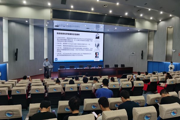 物化探所林品荣、刘建勋、张必敏和彭敏四位科研人员分别作专题报告。其中,林品荣教授以“地面电磁探测系统的研究与应用”为题,聚焦我国能源资源勘查对大深度高分辨电磁探测技术的需求,从自主研发探测装备的方法原理、仪器开发、信号采集处理、示范应用等方面进行了介绍,对下一步的研究发展提出了构想;刘建勋教授以“地质调查领域深部能源资源地震探测技术研究进展”为题,针对北方重要油气盆地火山岩覆盖区、陡倾地层区深部成像难度大等问题,介绍了高密度、高覆盖次数、宽频带、长排列接收的深反射地震探测技术方法,实现了火山岩覆盖层下主要目标层系的精确成像;张必敏博士以“深部找矿地球化学技术进展与案例”为题,结合团队研发成果,讲述了用于深部找矿的穿透性地球化学勘查技术的应用原理以及近几年国内外技术的发展现状,并重点介绍了其中几项关键技术;彭敏博士以“全国土地质量地球化学调查二十年”为题,回顾和总结了该工程实施20余年来的发展历程及取得的主要成果,介绍了在支撑服务农业发展、土壤环境污染防控、土地资源管理、国家重大立法和实施精准扶贫等方面做出了重要贡献,同时对未来的发展方向提出了展望。报告结束后,四位专家就师生提出的具体问题进行了详细解答和深入探讨。