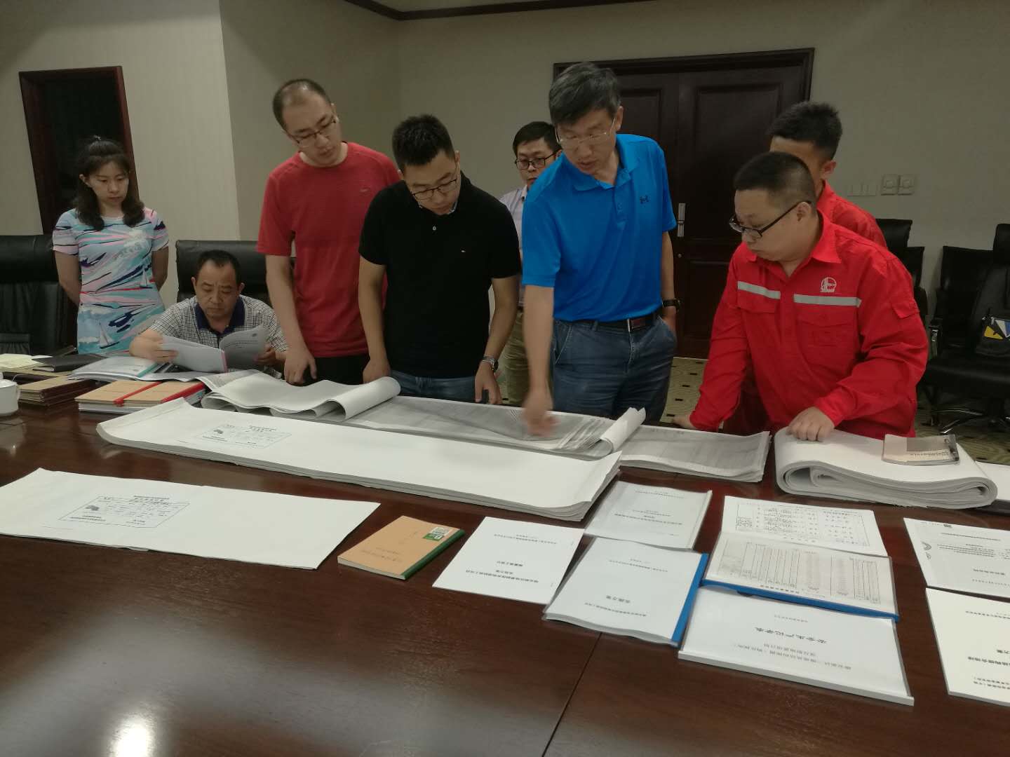 检查组首先前往野外现场,对地震作业和井炮施工进行了抽查。在保定市徐水区南庞村,听取了项目组对地震野外工作情况的汇报,检查了仪器车现场数据采集、激发孔的钻井施工、山前井深和药量试验点以及测线和检波器的布置等工作。随后的室内检查,在听取负责人张杰关于项目工作进展、阶段性成果、质量以及安全、保密工作等情况汇报的基础上,对地震、大地电磁、重磁等方法的野外原始记录、质量控制记录和野外安全生产、保密记录等进行了全面详细的检查。