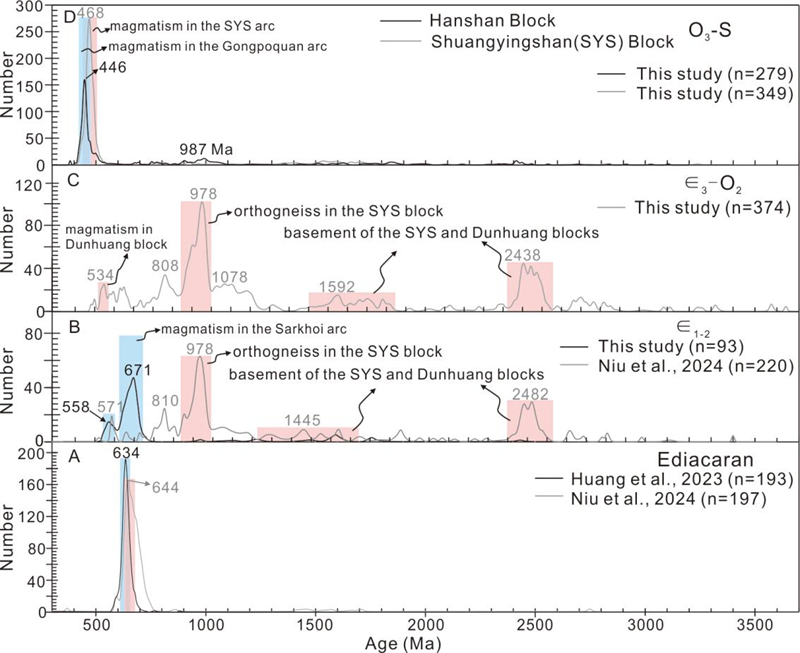 该研究对中亚造山带南缘的红柳河-洗肠井洋两侧的早古生代沉积岩地层序列、碎屑锆石U-Pb同位素年龄和Hf同位素组成进行了研究,剖析了该洋盆的演化过程及其与其他洋盆的关系,分别对于陆壳改造和增生的贡献。取得新认识如下: