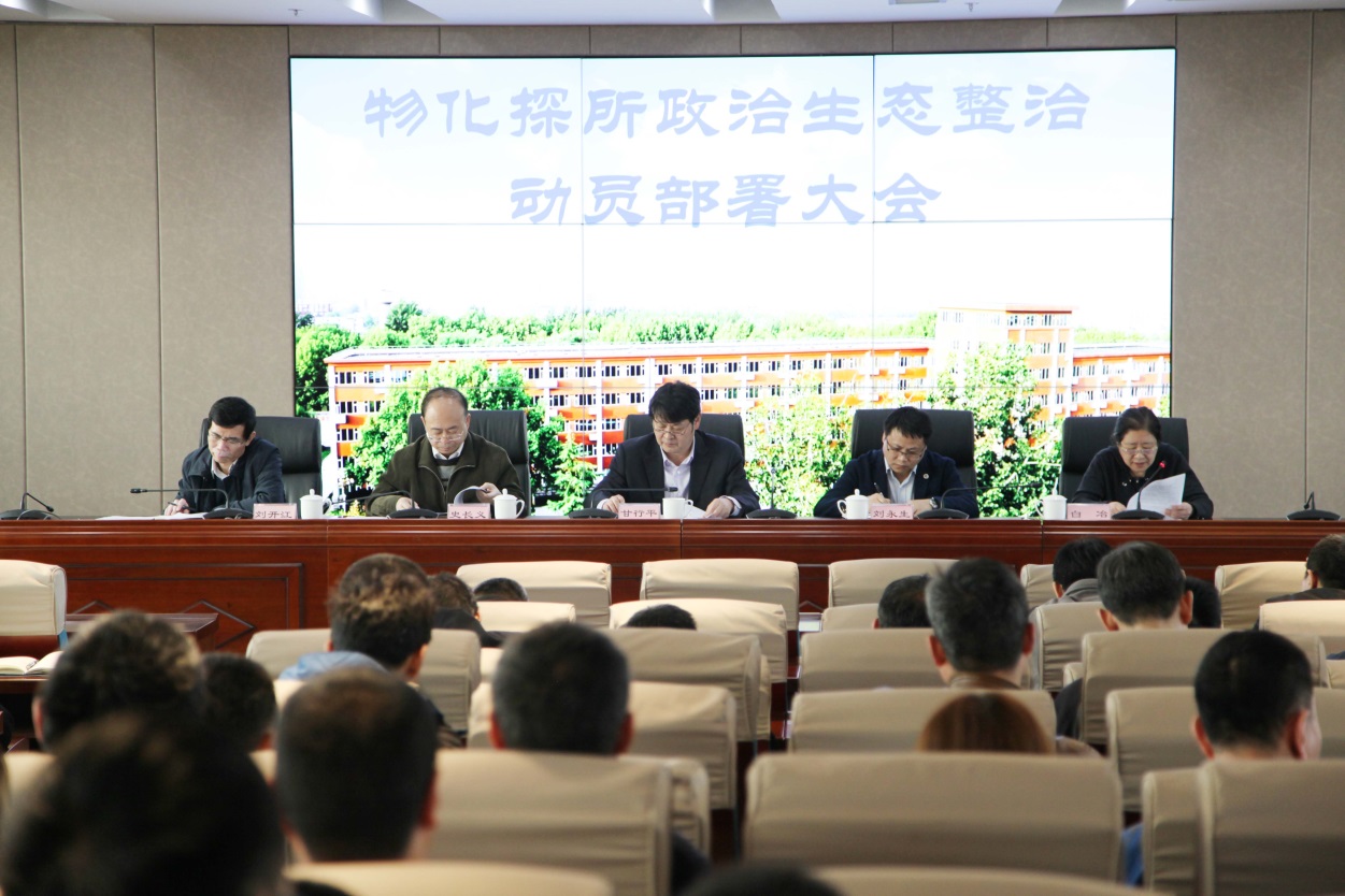 为进一步净化所的政治生态,营造良好的干事创业氛围,保障地调科研事业健康发展。2017年3月30日,按照局党组统一部署和要求,物化探所召开了政治生态整治动员部署大会。会议由所党委书记甘行平同志主持,所党委成员、副所长史长义,所党委成员、纪委书记白冶,所党委成员、副所长刘开江和在所的二百余名职工参加会议。