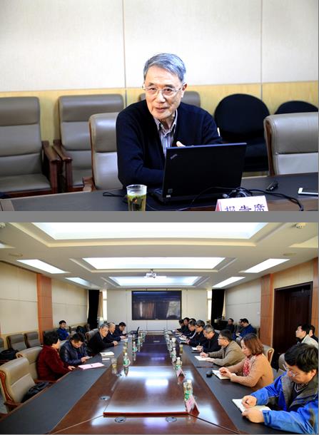 郝国杰副所长对何继善院士一行到访指导我所表示热烈欢迎,并简要介绍了物化探所的历史沿革、研究领域、科技创新平台和最新业务机构调整等情况。