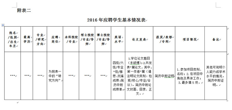 2、《2016年应聘学生基本情况表》(附表二)。请按表中要求认真填写,凡不提供基本情况表的应聘人员,视为无效简历。