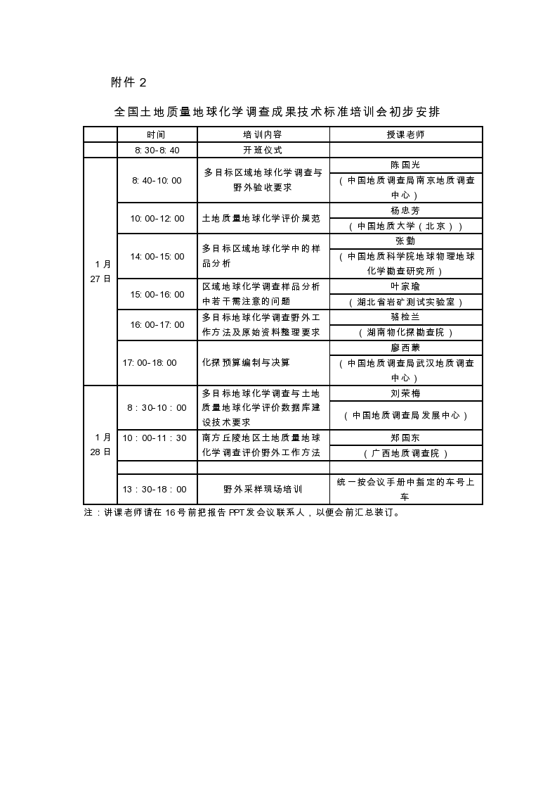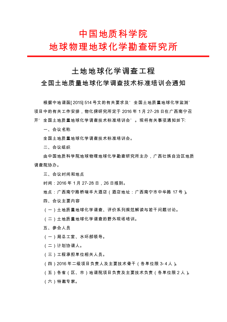 土地地球化学调查工程全国土地质量地球化学调查技术标准培训会通知