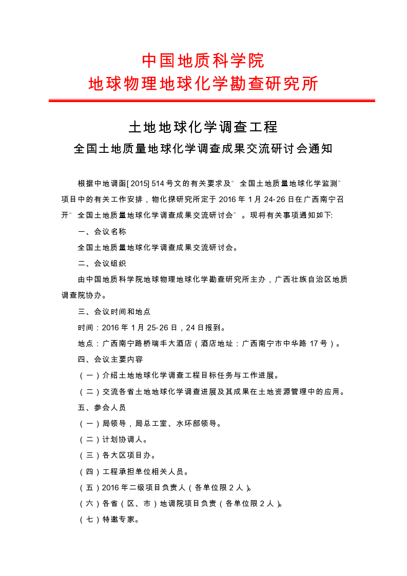土地地球化学调查工程全国土地质量地球化学调查成果交流研讨会通知