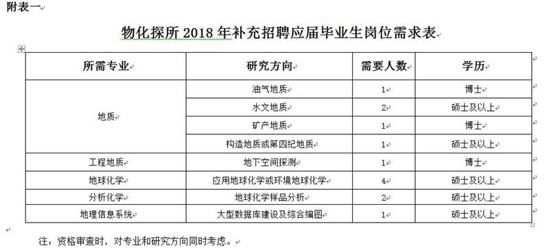中国地质科学院地球物理地球化学勘查研究所(简称物化探所,英文简称IGGE),1957年2月创建于北京,现所在地河北省廊坊市金光道84号,2016年所与天津市签署合作共建协议,将搬迁至天津市。物化探所是国土资源部中国地质调查局所属的专门从事勘查地球物理、勘查地球化学方法技术研究与应用的国家公益性科研机构,既是我国科技创新体系的组成部分,又是中央基础性公益性地质调查机构。是我国现代地质勘查行业物探和化探两大学科的科研创新基地,相关应用基础理论和新方法新技术研究开发、成果转化的辐射源。根据本所事业发展的需要,决定面向高校公开补充招聘2018年应届毕业生,现将有关事宜公告如下: