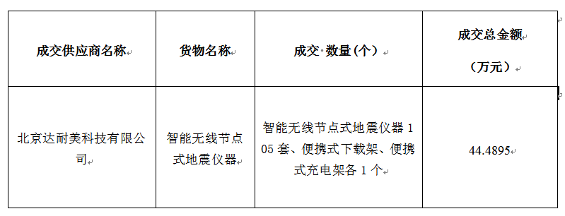 智能节点式地震仪器成交明细表