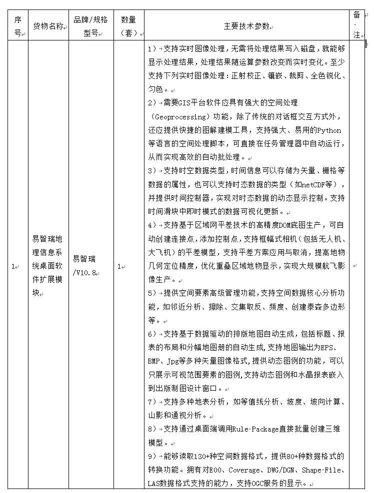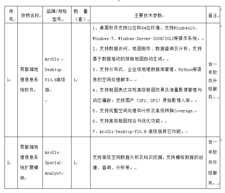 易智瑞地理信息系统桌面软件扩展模块采购明细表