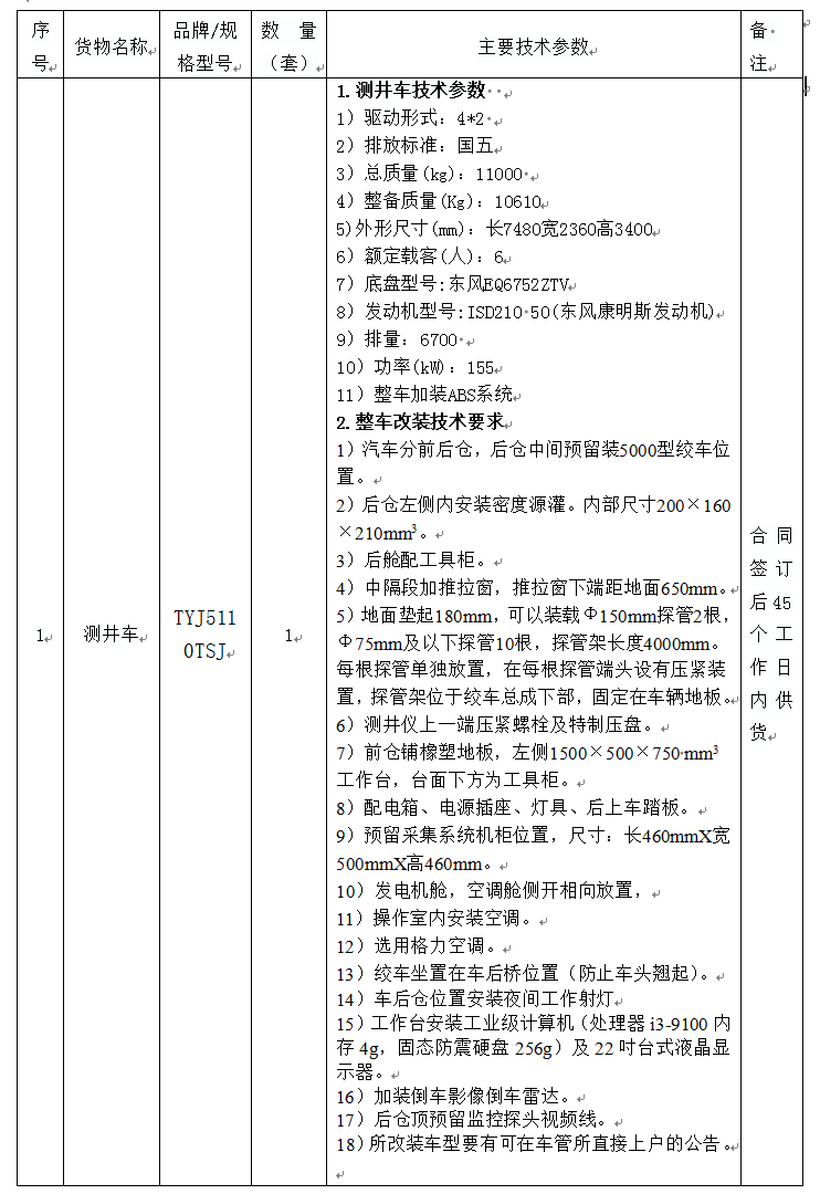 2、采购项目名称及编号:测井车(IGGECG202015)