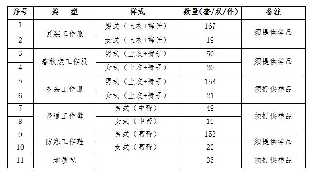 1、项目名称:中国地质科学院地球物理地球化学勘查研究所野外劳保服装采购