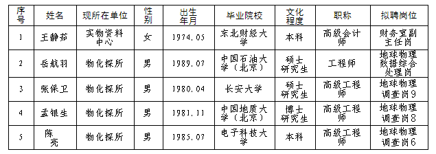 根据中国地质调查局双向交流选调工作安排,经发布公告、报名、资格审查、面试、考察、体检等程序,中心党委集体研究确定交流选调拟聘用人员,现予以公示。