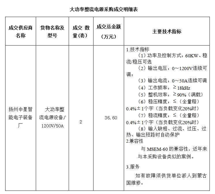 一、项目名称及编号:大功率整流电源设备采购(IGGECG202101)