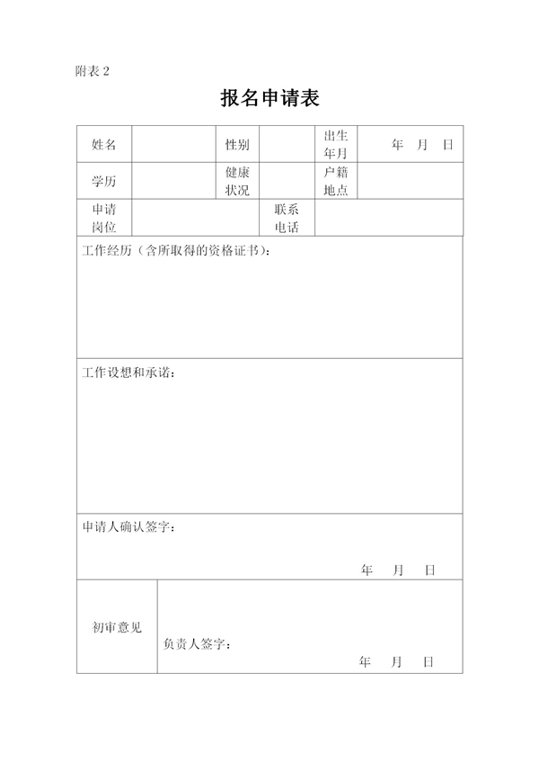 1.报名。请于2022年5月11日前将报名材料报送至人事教育处212房间。报名材料包括本人身份证复印件、当地公安机关开具的无违法违纪证明、县级及以上医院体检表(血压、心电图、血常规、胸透、心脏彩超等)、报名表(报名表见附表2)1份、个人简历(附学历资历材料复印件)5份。