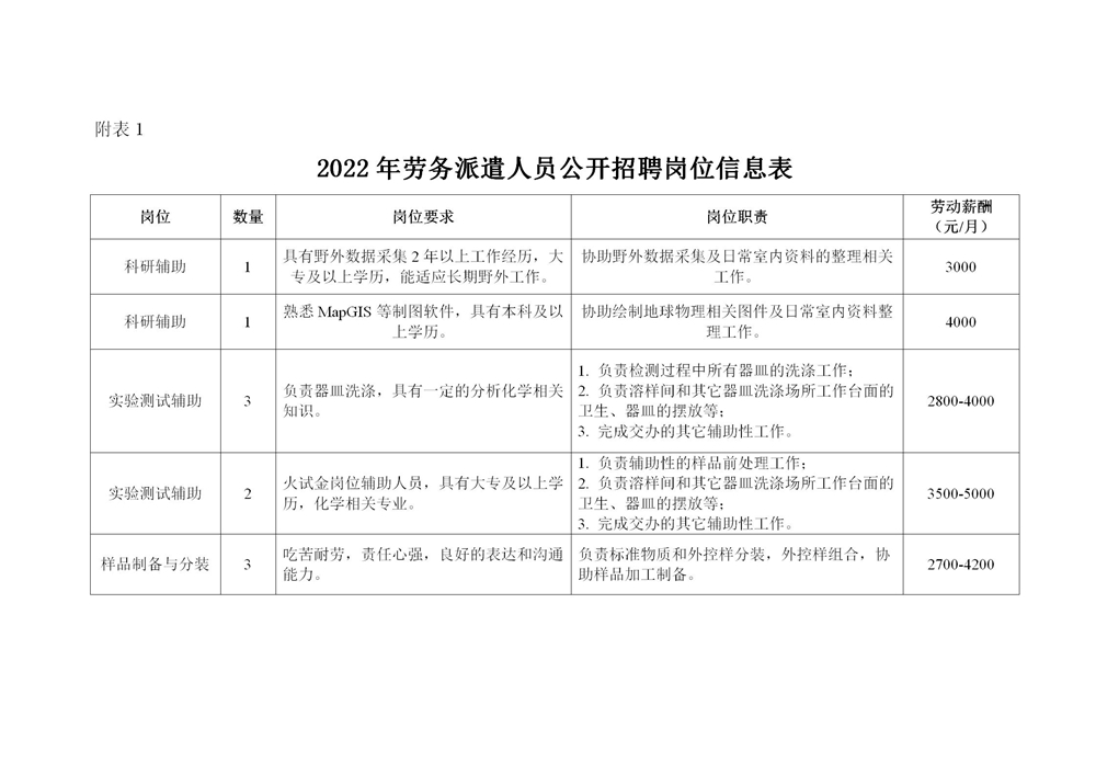 根据工作需要,物化探所现面向社会公开招聘劳务派遣人员,具体要求如下: