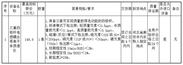 项目名称:三重四极杆电感耦合等离子体质谱仪设备采购