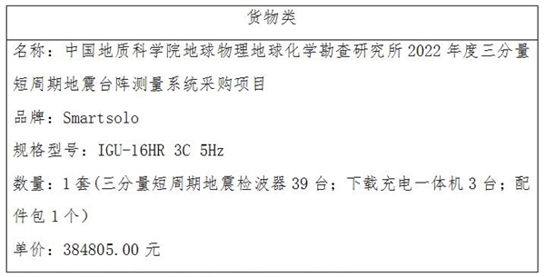 二、项目名称:中国地质科学院地球物理地球化学勘查研究所2022年度三分量短周期地震台阵测量系统采购项目