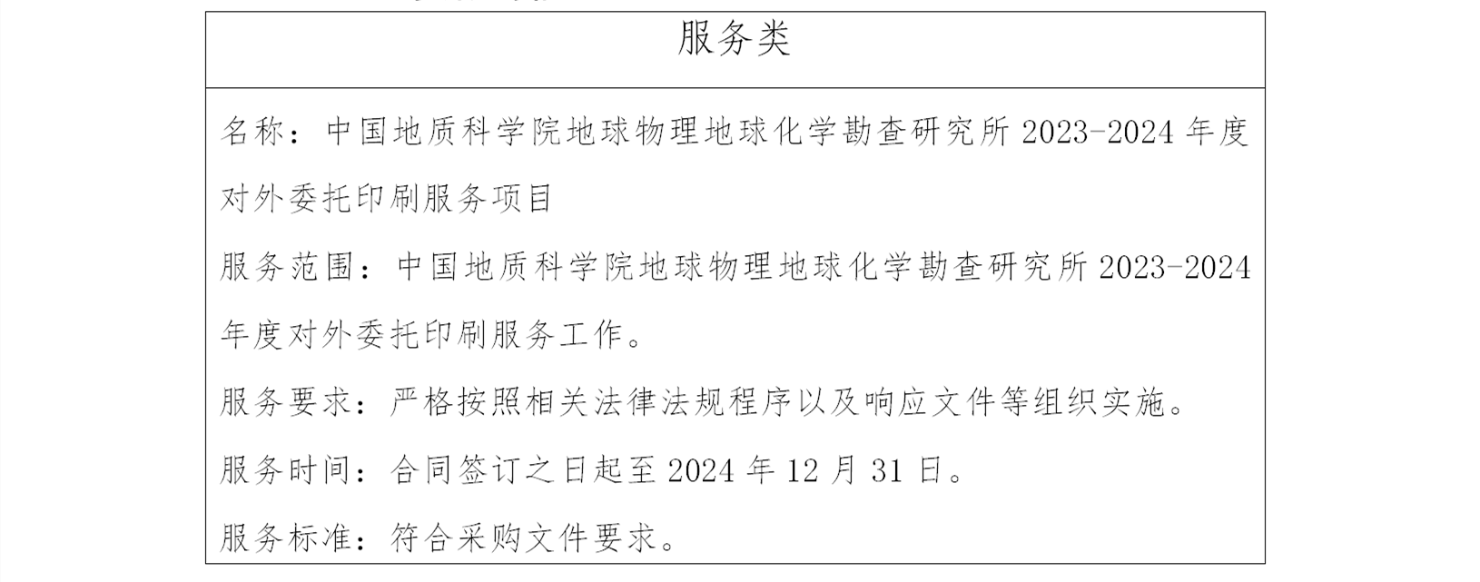 二、项目名称:中国地质科学院地球物理地球化学勘查研究所2023-2024年度对外委托印刷服务项目