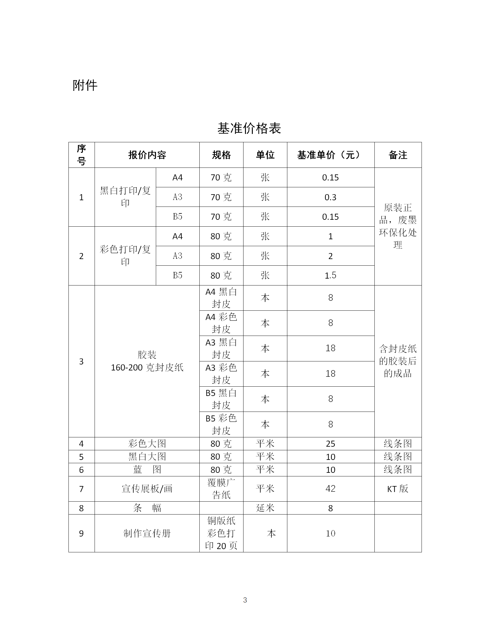 基准价格表见附件。