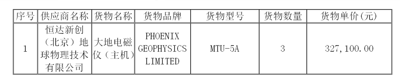 二、项目名称:大地电磁仪(主机)采购项目