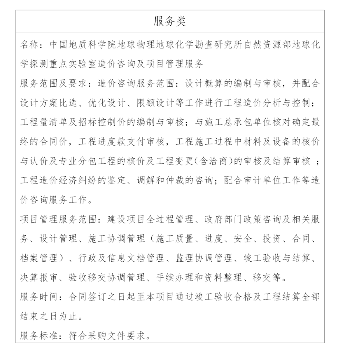 二、项目名称:中国地质科学院地球物理地球化学勘查研究所自然资源部地球化学探测重点实验室造价咨询及项目管理服务