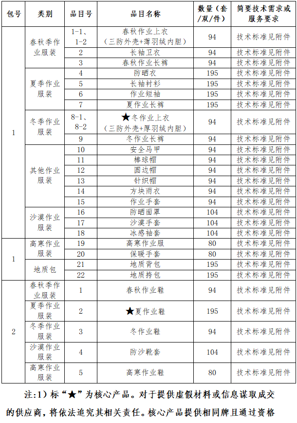 1.项目名称及编号:中国地质科学院地球物理地球化学勘查研究所野外作业服装和鞋靴项目(IGGECG202417)。