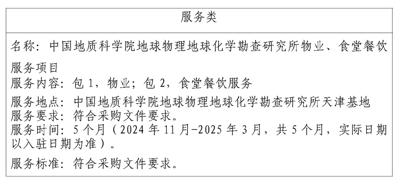 二、项目名称:中国地质科学院地球物理地球化学勘查研究所物业、食堂餐饮服务项目
