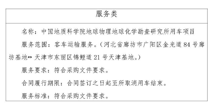 二、项目名称:中国地质科学院地球物理地球化学勘查研究所用车项目