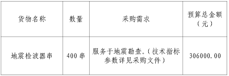1.项目名称:中国地质科学院地球物理地球化学勘查研究所地震检波器串采购项目(IGGECG202521)