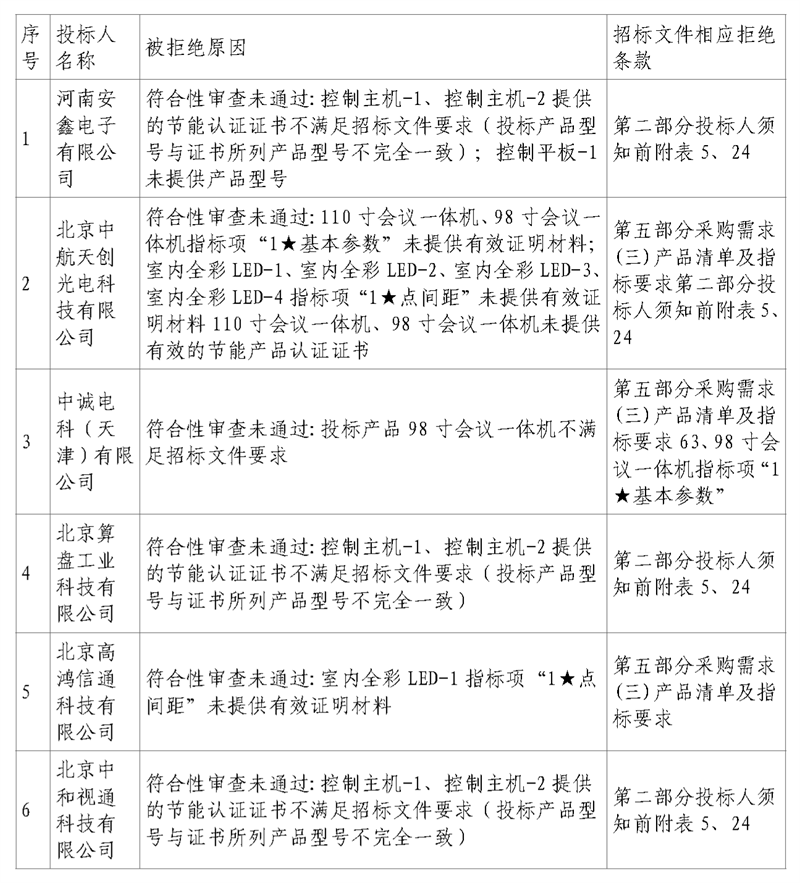 以下投标人未通过初审: